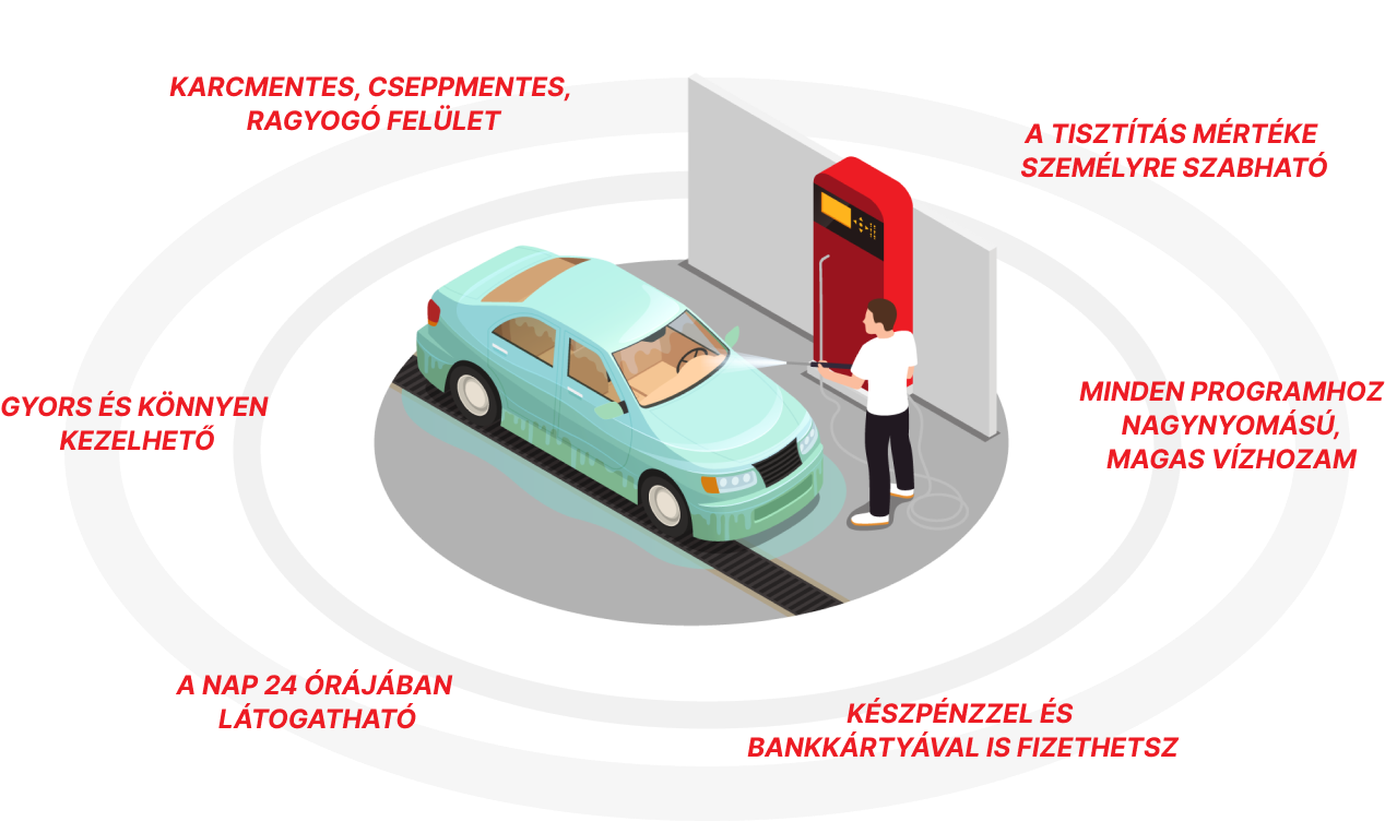 Az autómosó kizárólag 3,5 tonnánál kisebb össztömegű gépkocsik számára engedélyezett!